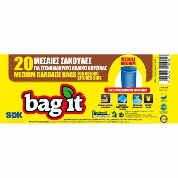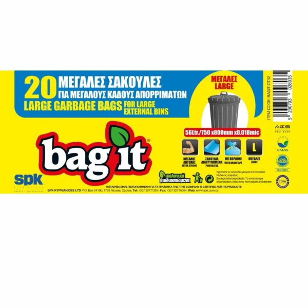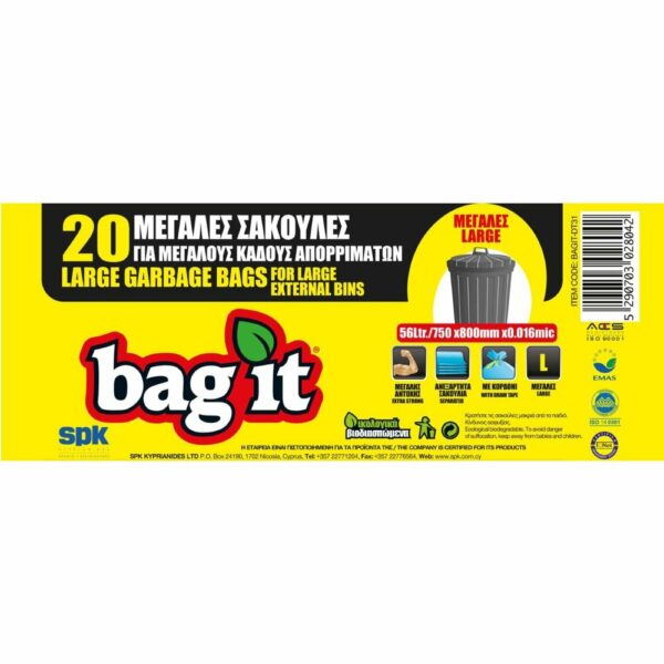 BagIt Μεγάλα Σακούλια για Μεγάλους Κάδους Απορριμάτων με Κορδόνι Μαύρα 750X800mm+50mm 20τμχ