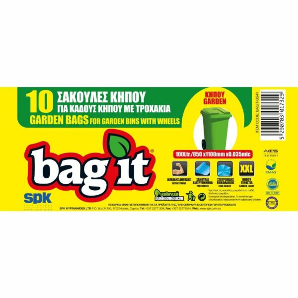 BagIt Πράσινες Τεράστιες Σακούλες 850x1100mm για Κάδους Κήπου με Τροχάκια, Σταυροειδής Επικόλλησης 10τμχ