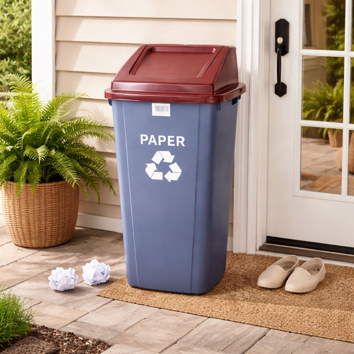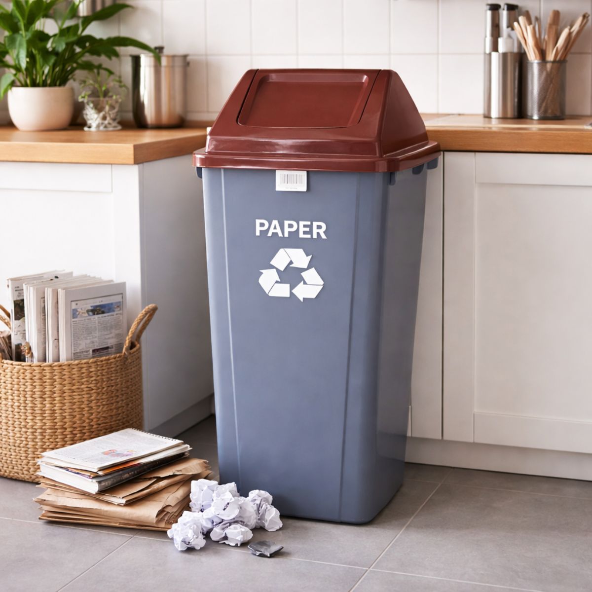 Ο κάδος απορριμμάτων ανακύκλωσης 90 λίτρων αποτελεί μια πρακτική λύση για τον εύκολο και οργανωμένο διαχωρισμό ανακυκλώσιμων απορριμμάτων. Είναι ειδικά σχεδιασμένος για τη συλλογή χάρτινων υλικών, βοηθώντας στη σωστή διαχείριση της ανακύκλωσης στο σπίτι, στο γραφείο ή σε επαγγελματικούς χώρους.