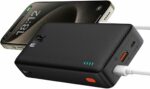 - Emergency Backup Power The 10,000mAh battery bank cell capacity gives you enough power to charge the iPhone 15 Pro Max 1.3 times, the Samsung S23 1.5 times, and the iPad mini 5 more than once.