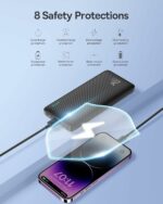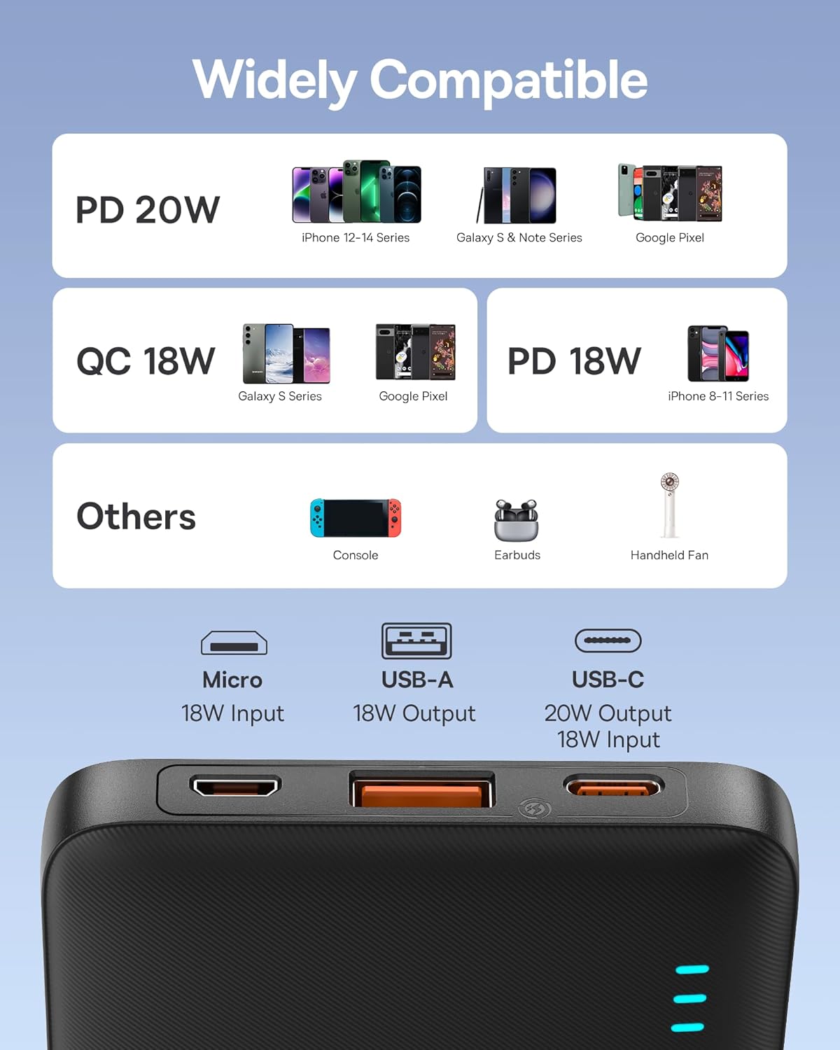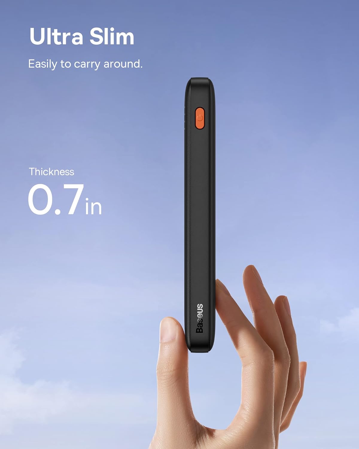 - Ultra-thin and Portable Slim and compact design makes it the perfect portable power bank for travels, and easily fits into bags or backpacks, so you can stay powered for the journey.