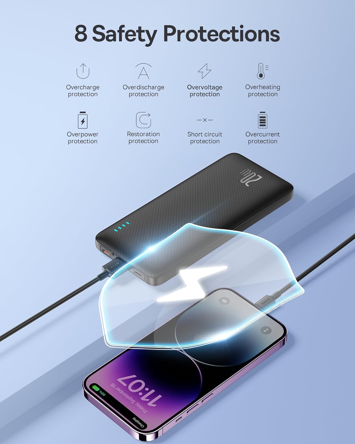 - Safe Travels Baseus usb c power bank has 9 built-in safety protections to protect you and your device. It is allowed and safe to board with on any plane, so you won’t be caught on short of power when you are on the go.