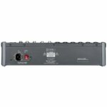 Διαθέτει 6 μονοφωνικά κανάλια Mic/Line με συνδυαστικές εισόδους XLR/Jack και switchable phantom power +48V (κατά ζεύγη), καθώς και 2 στερεοφωνικές εισόδους line. Κάθε κανάλι περιλαμβάνει 3-band EQ (Low, Mid, High), Gain, Pan, Aux Send, FX Level και 60mm fader, εξασφαλίζοντας ακριβή έλεγχο και επαγγελματική μίξη.