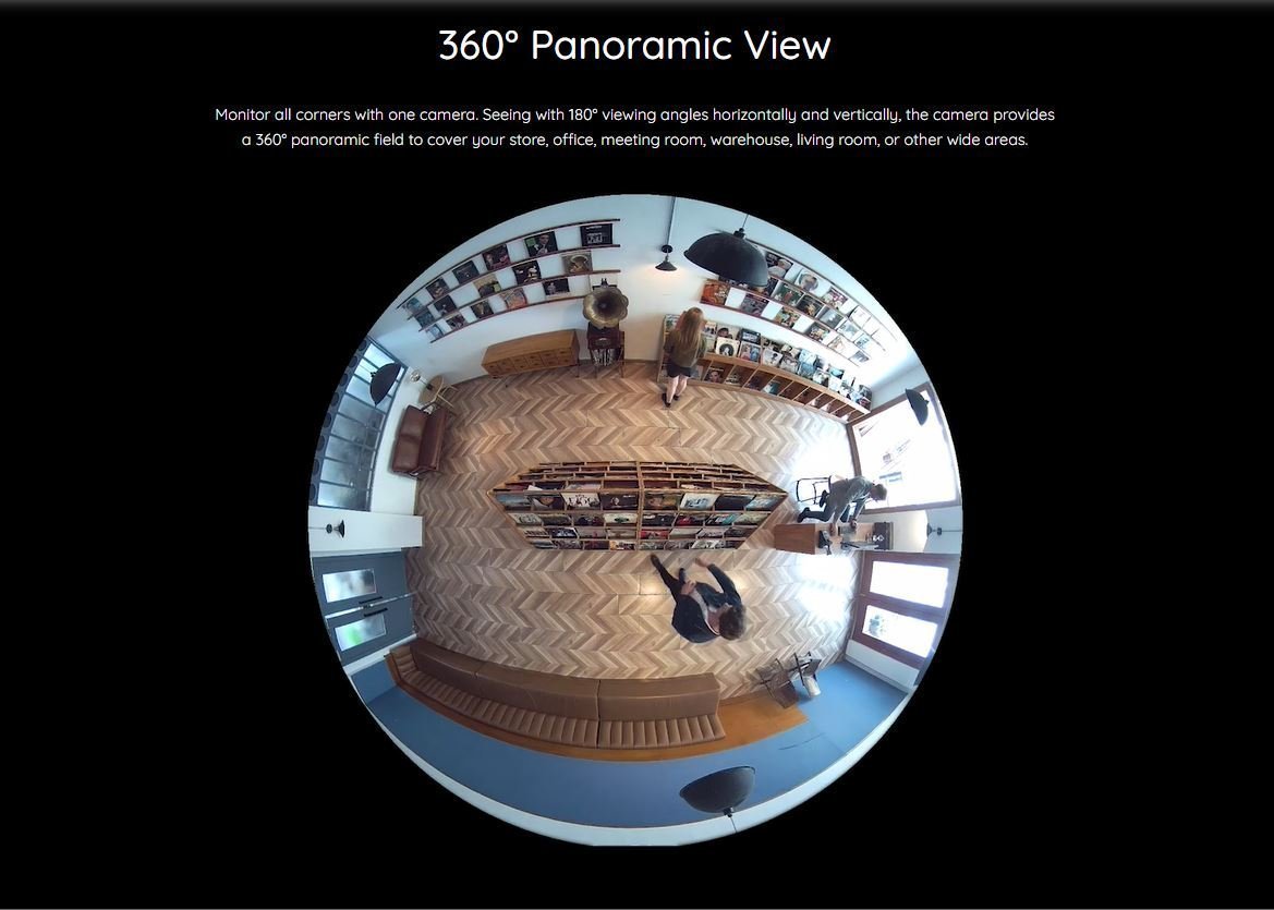 - 360° Panoramic View : Monitor all corners with one camera. Seeing with 180° viewing angles horizontally and vertically, the camera provides a 360° panoramic field to cover your store, office, meeting room, warehouse, living room, or other wide areas