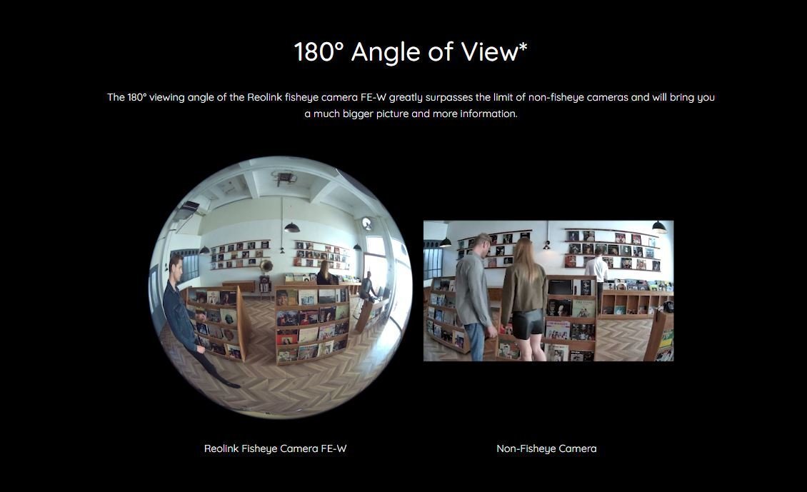 - 180° Angle of View : The 180° viewing angle of the Reolink fisheye camera FE-W greatly surpasses the limit of non-fisheye cameras and will bring you