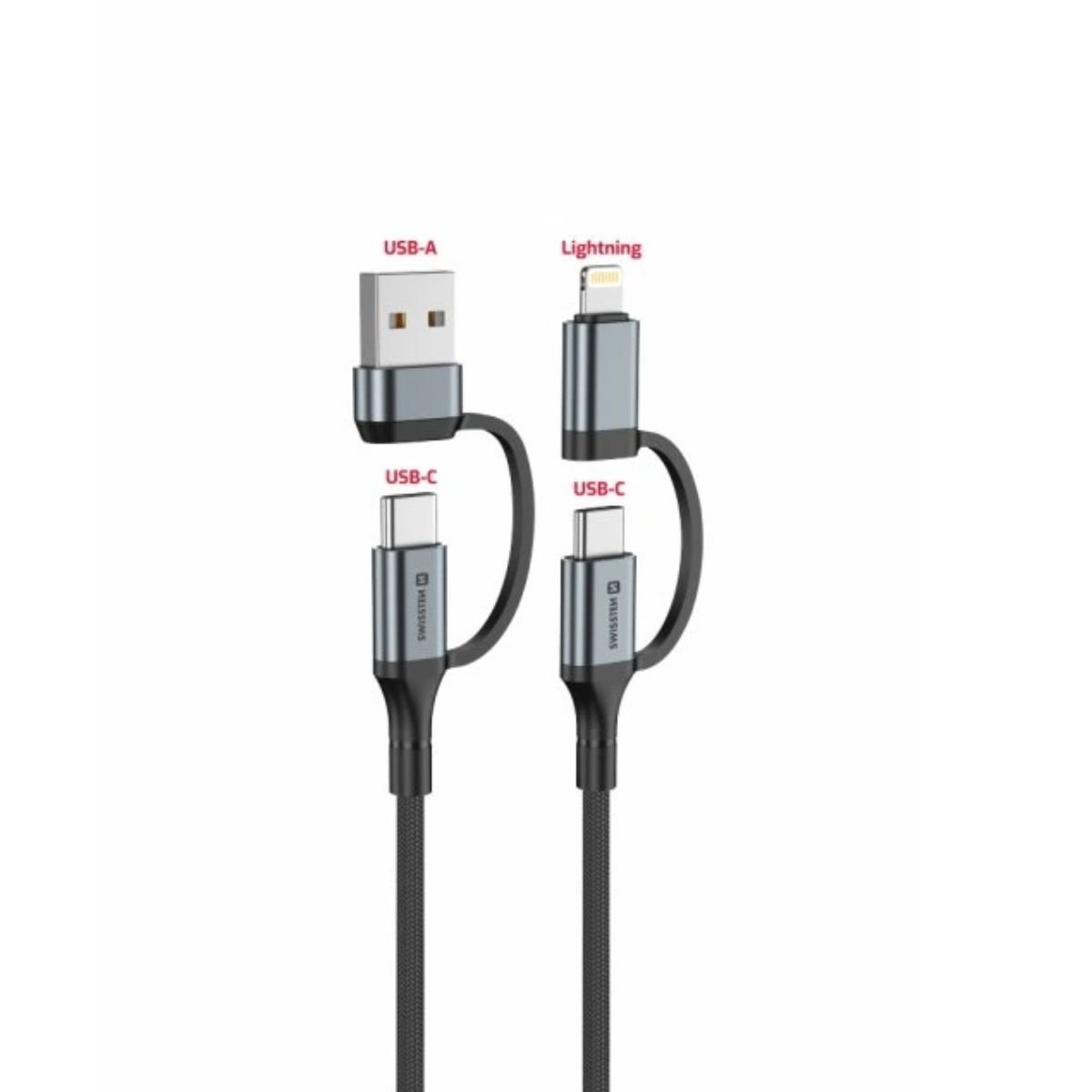 Swissten 4in1 Braided Καλώδιο Δεδομένων & Φόρτισης 3A 1.5m 74501102