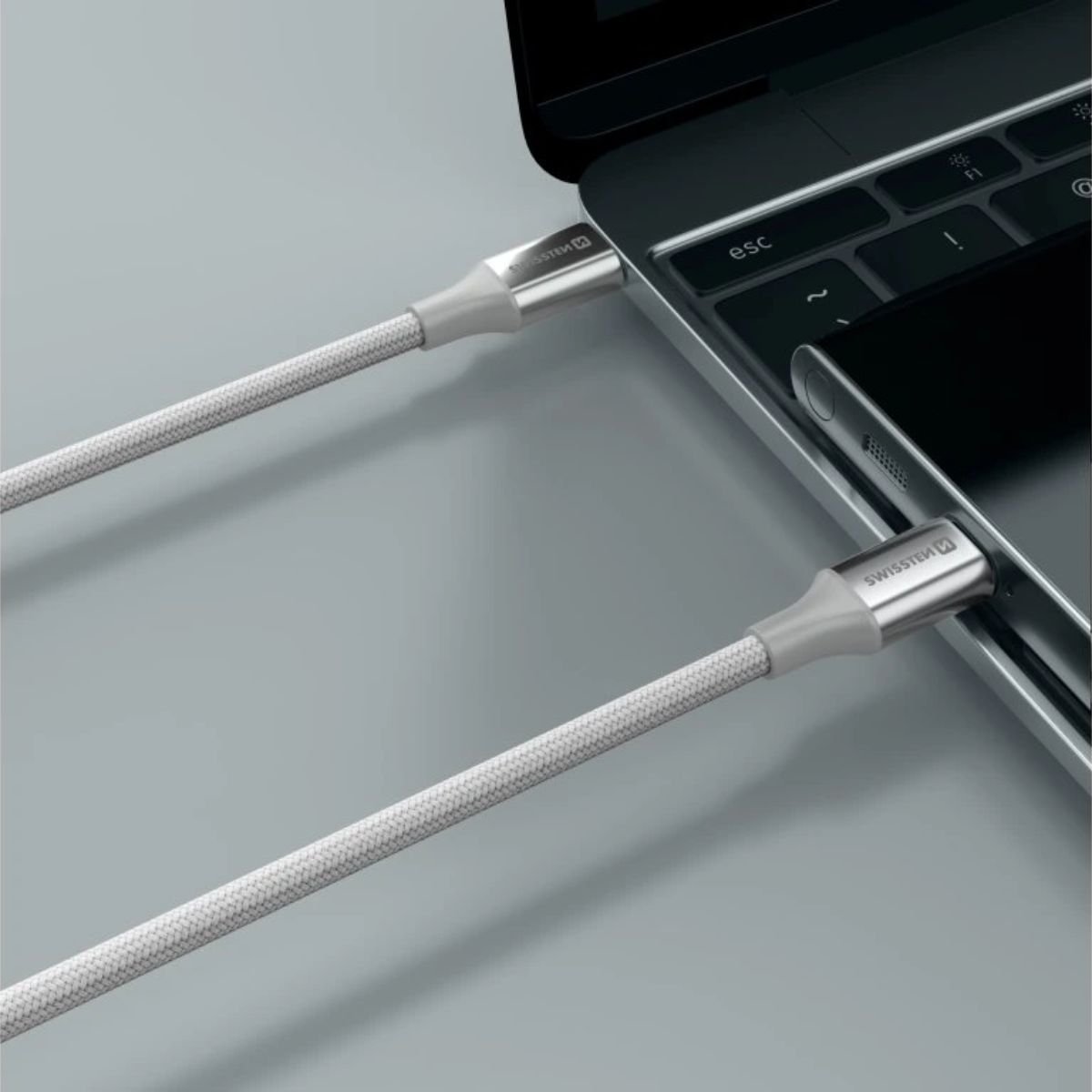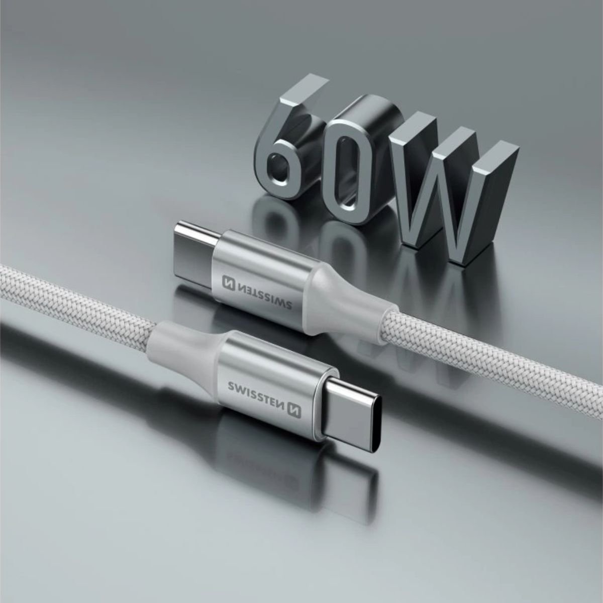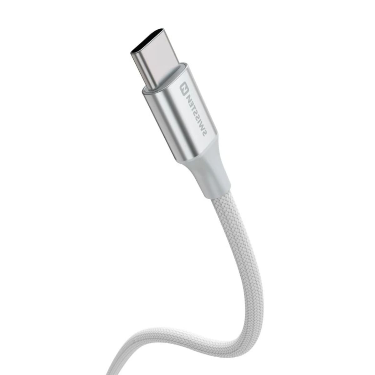 Swissten Braided Καλώδιο USB-C σε USB-C 3A (έως 60W) με Aluminum Shell 1.5m 71528204 Άσπρο