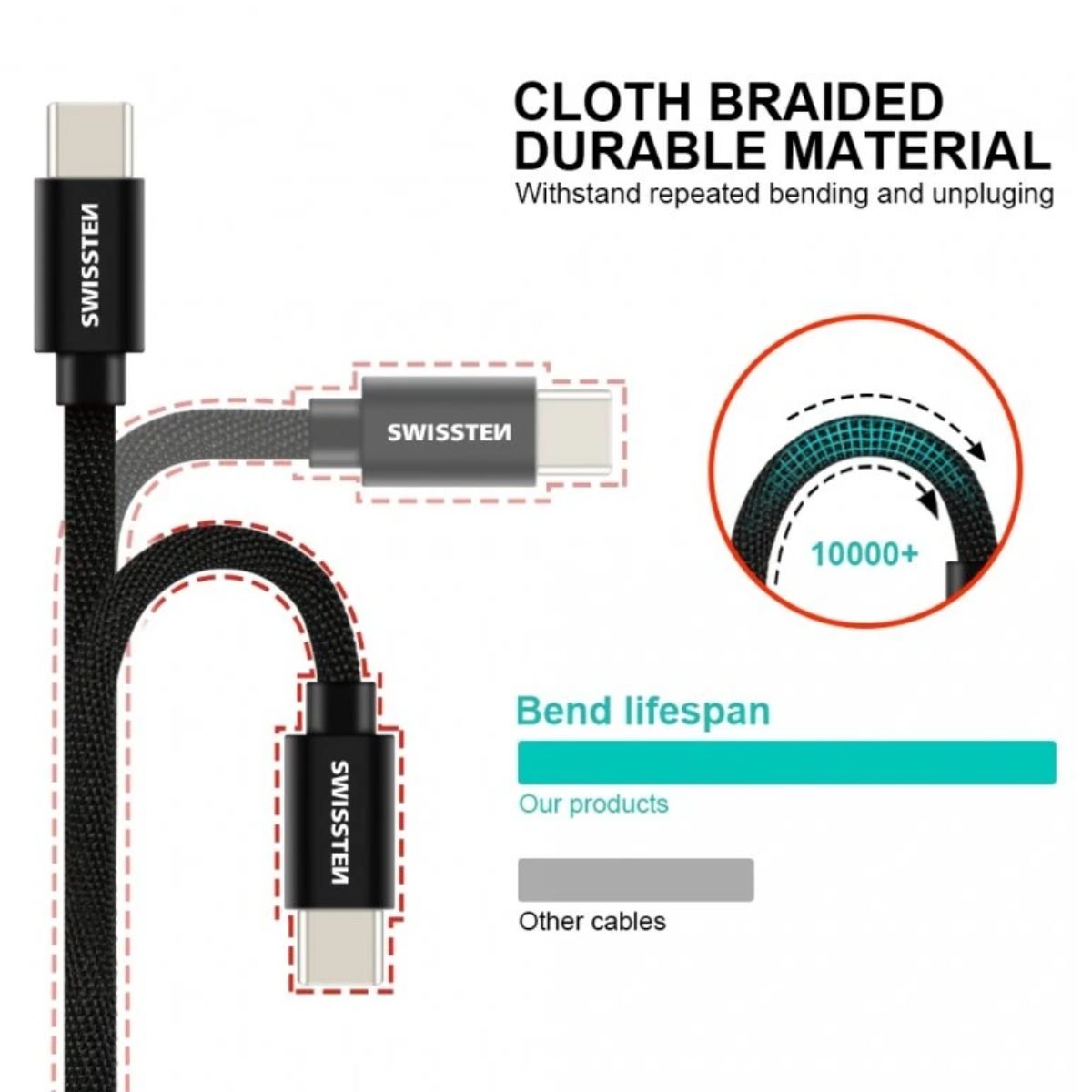 Το Swissten USB-A to Lightning Data Cable είναι σχεδιασμένο για απαιτητική καθημερινή χρήση, προσφέροντας υψηλή αντοχή και σταθερή απόδοση. Η textile braided επένδυση σε συνδυασμό με τα μεταλλικά καλύμματα στους συνδέσμους εξασφαλίζει μεγαλύτερη ανθεκτικότητα σε σχέση με τα κλασικά καλώδια με πλαστική κατασκευή.