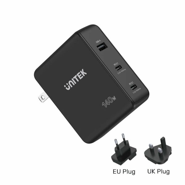 - Multiple Charging Ports – 25% smaller than the original 140W Mac charger. With 2 USB-C power delivery ports and 1 USB-A port, our 140W USB C wall charger can quickly charge 3 devices at the same time. With just one charger, you have the power to charge all your phones, tablets and USB-C laptops quickly.