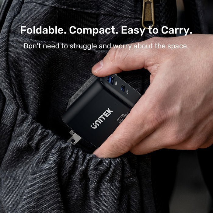 The UNITEK 35W GaN Wall Charger boasts a remarkably compact design, 60% smaller than standard 35W USB-C chargers, while delivering robust charging capabilities. Perfect for home, office, or on-the-go, this charger is an ideal companion for your mobile lifestyle.