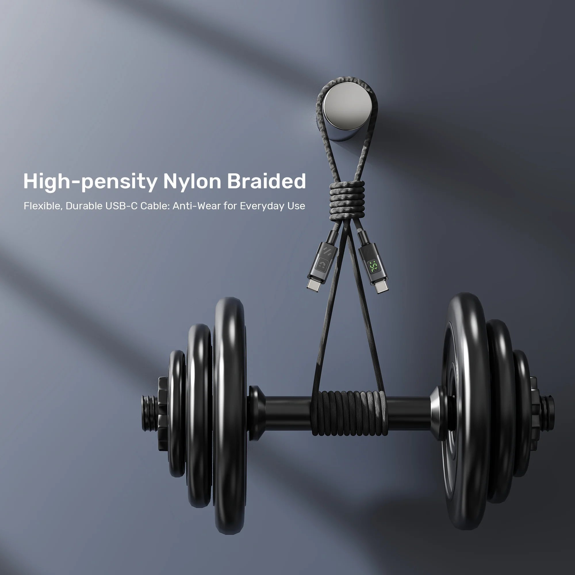 UNITEK PD 60W USB-C Cable with LED display monitors charging wattage. Delivers 60W fast charging and 480Mbps data transfer. Durable nylon braided design, compatible with iPhones, MacBooks, and more. Available in 1M, 2M, 3M lengths.