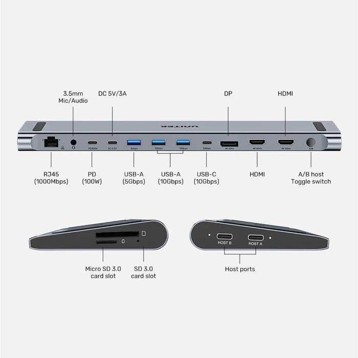 Unitek USB-C Hub Docking Station & 2-Port KVM 10Gbps Triple Display D1106A