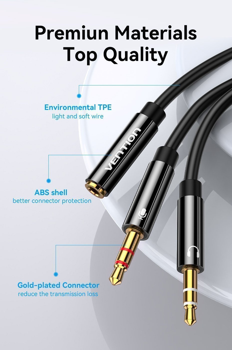 Vention AUDIO 3.5mm F to 2×3.5mm M Splitter Cable 0.3m BBTBY
