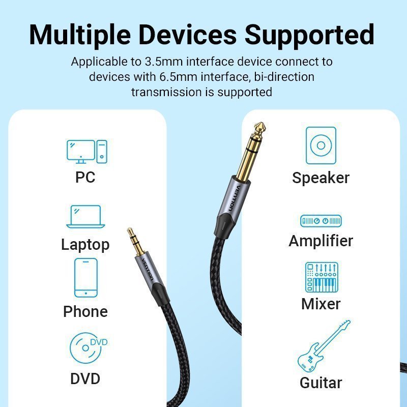 Vention AUDIO 3.5mm to 6.3mm M-M TRS Cable Braided Alum 10.0m BAUHL