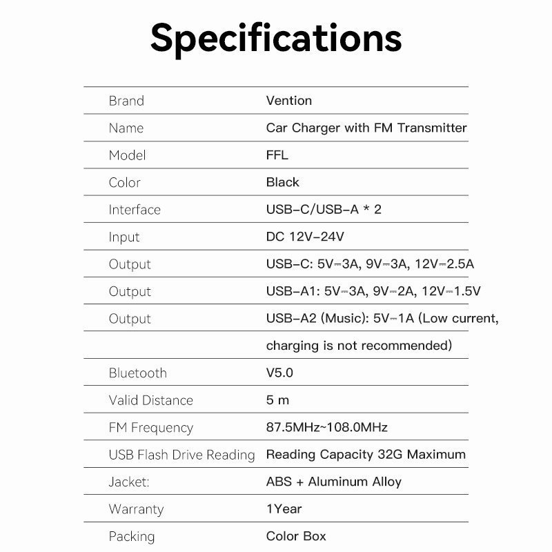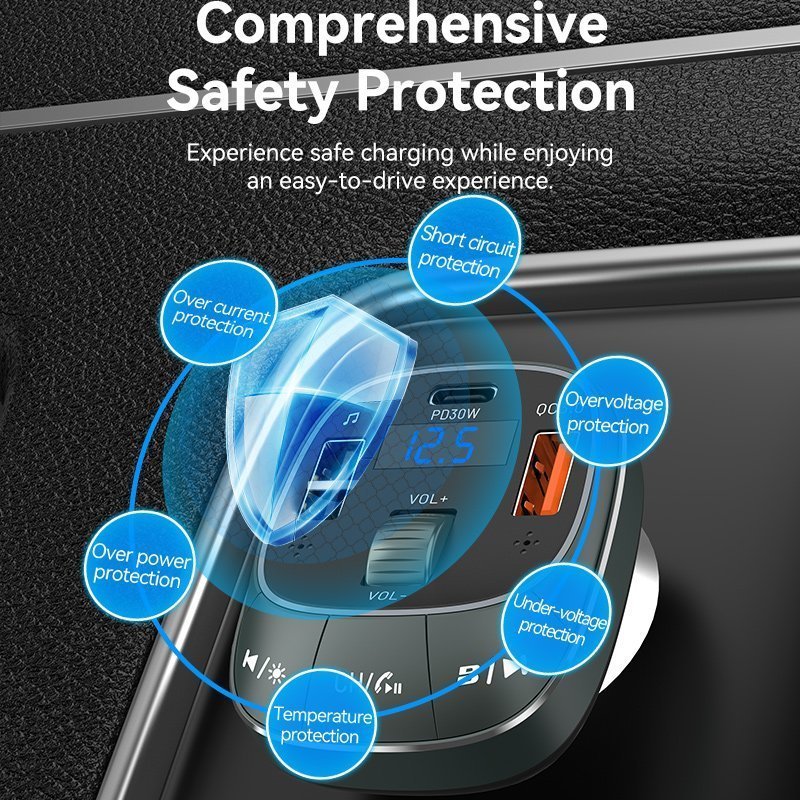 Vention Car FM Transmitter & Charger 3xUSB 30W/18W/5W FFLB0