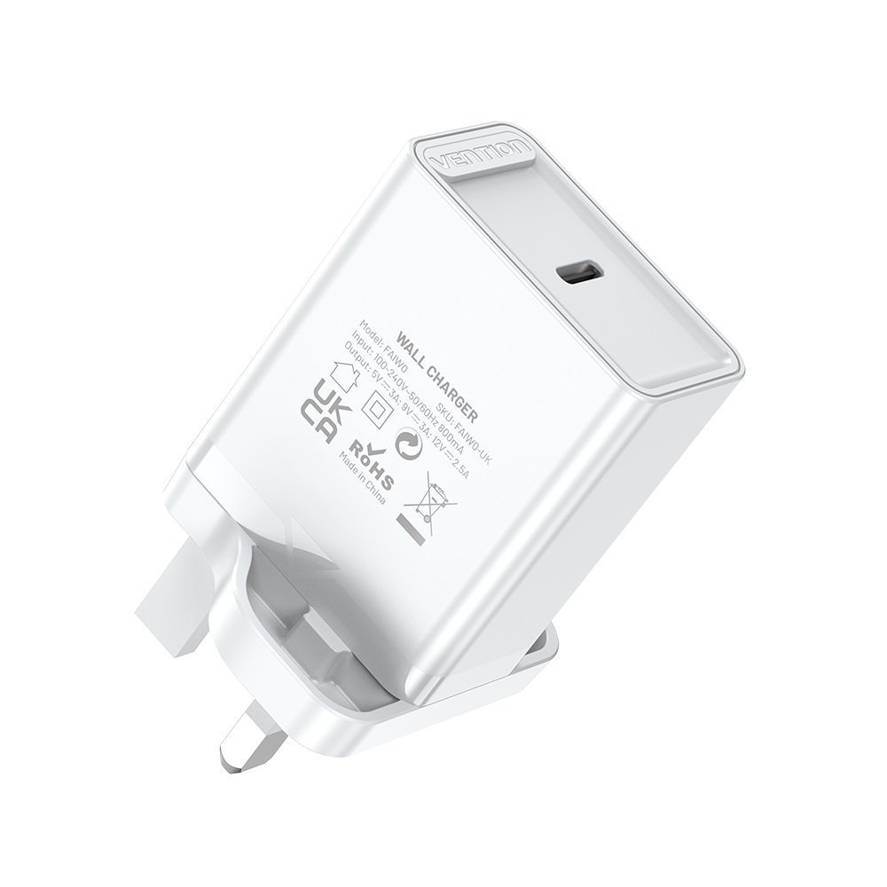 Vention Charger Wall 30W 1xUSBC UK Plug White FAIW0-UK