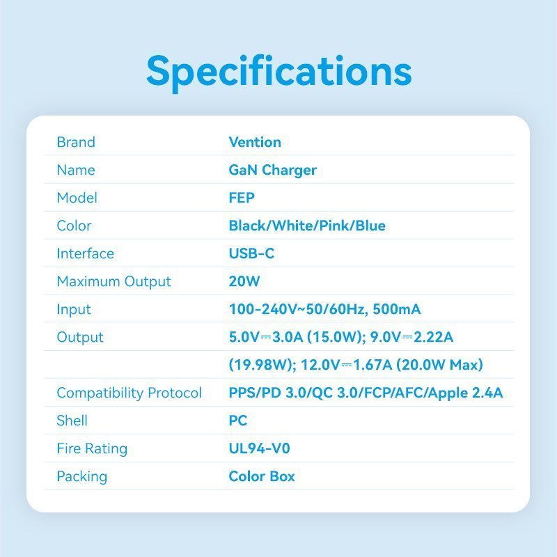 Vention Charger Wall GaN 20W 1xUSBC UK-Plug Mini Black FEPB0-UK