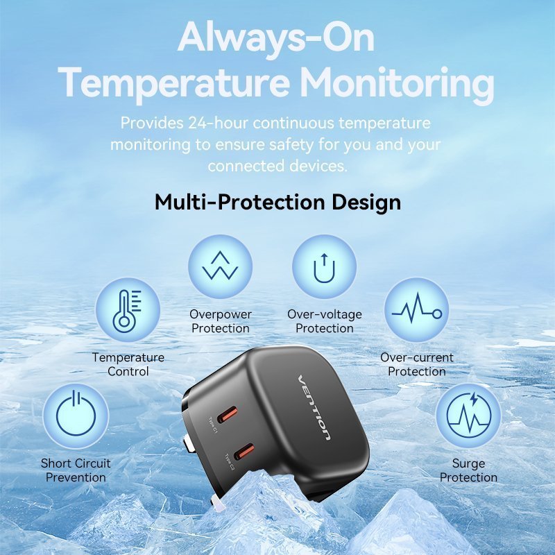 Vention Charger Wall GaN 45W 2xUSBC Black FESB0-UK