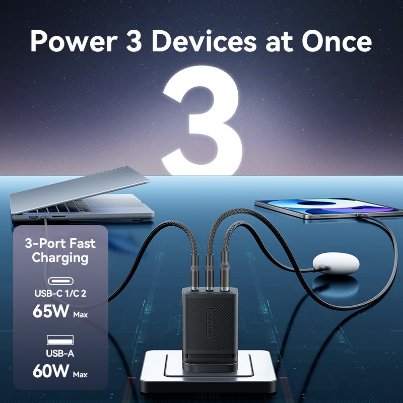 Vention Charger Wall GaN 65W 2xUSBC 1xUSBA Black FERB0-UK