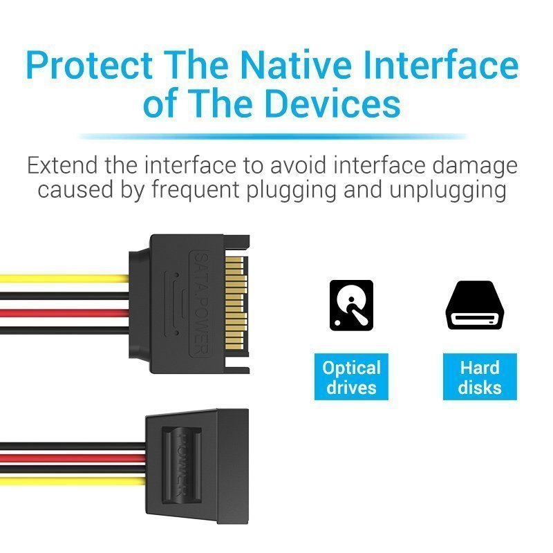 This sata cable has multi-voltage compatibility without any degradation of performance, compatible with sata, hard drive disk, optical drive, ssd, pci-e cards and other devices with sata 15 pin connector.