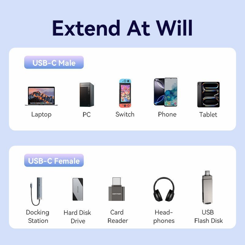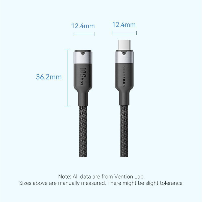 Vention IT Cable USB-C 3.2 Gen2 M-F 1.0m Braided Aluminum Black TRFBF