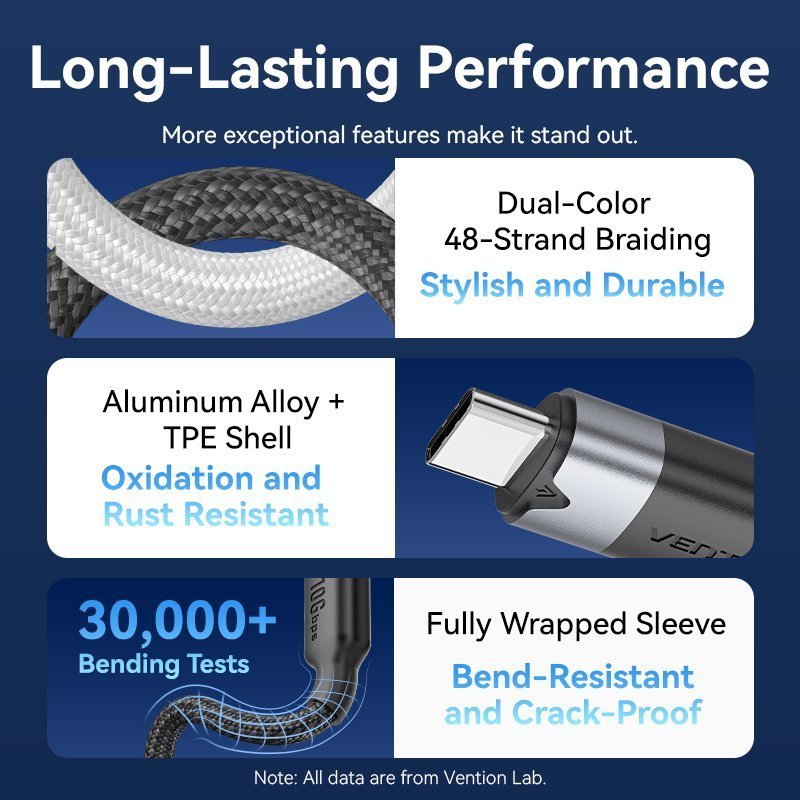 Vention IT Cable USB-C 3.2 Gen2 M-M 0.5m Braided Aluminum Black TRGBD