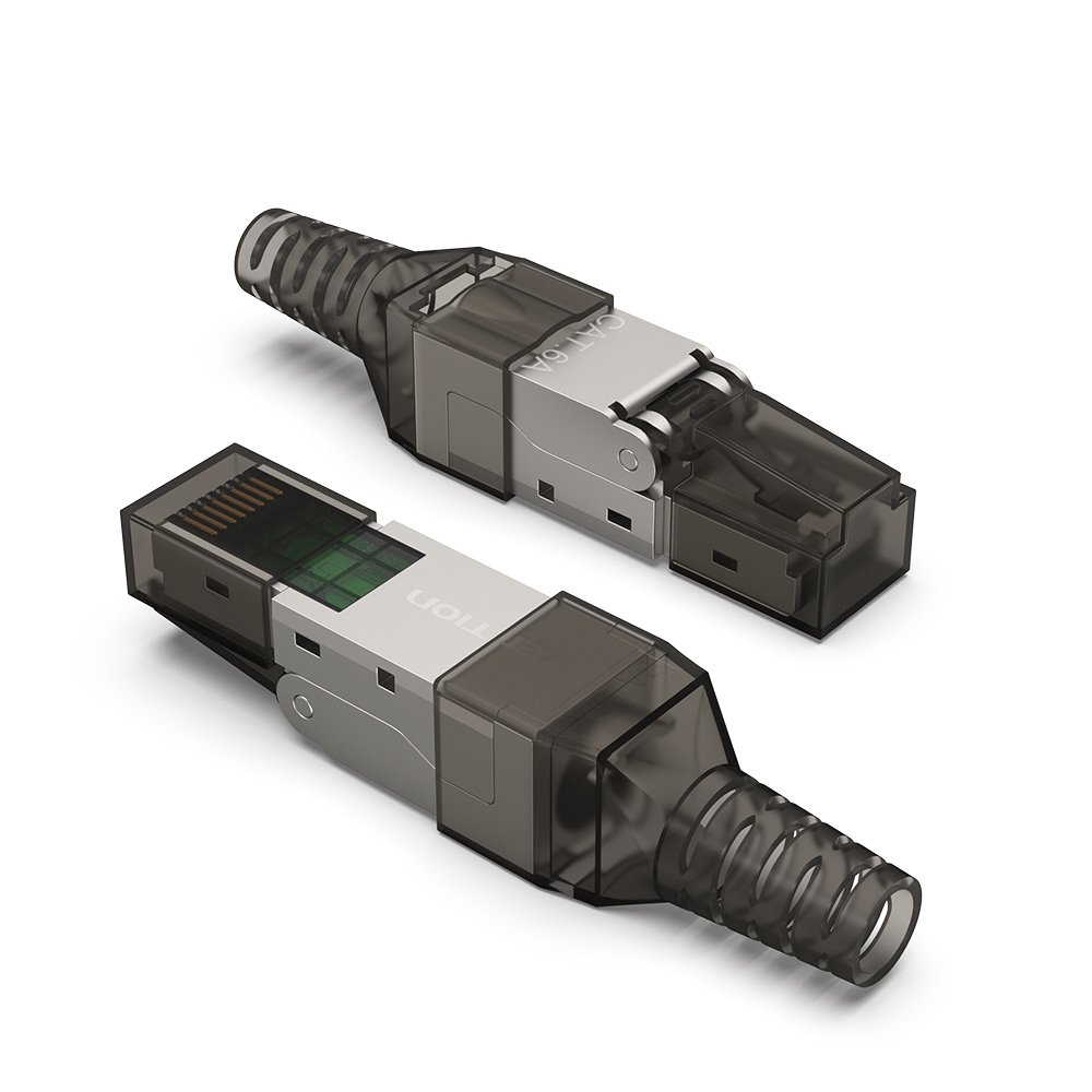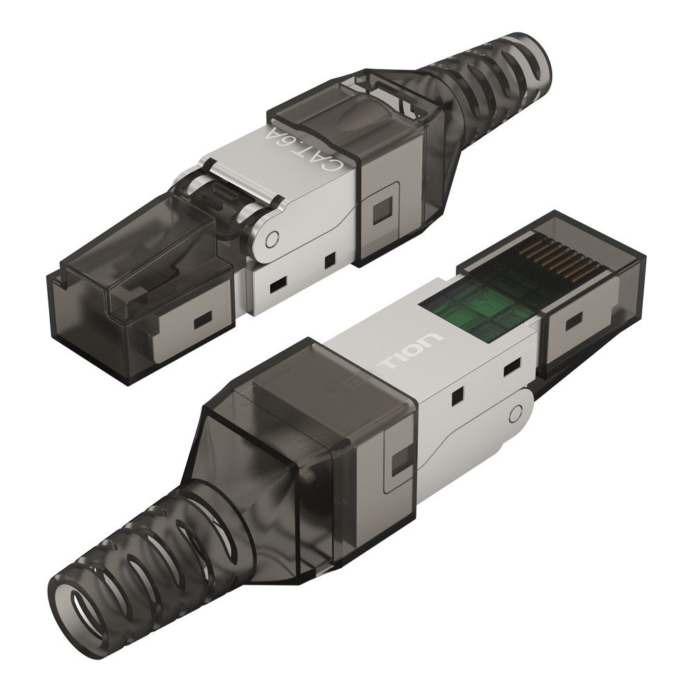 The Vention IDIH0 is a premium, heavy-duty Toolless RJ45 Connector designed for CAT6A networking. Unlike standard plugs that require a dedicated crimping tool, this is designed for "field termination," meaning you can assemble it by hand using the internal load bar and the screw-on boot.