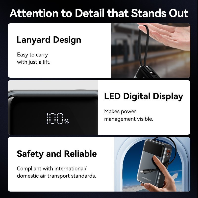 Vention Powerbank 20000mAh 65W+Built-in USBC FHYB0