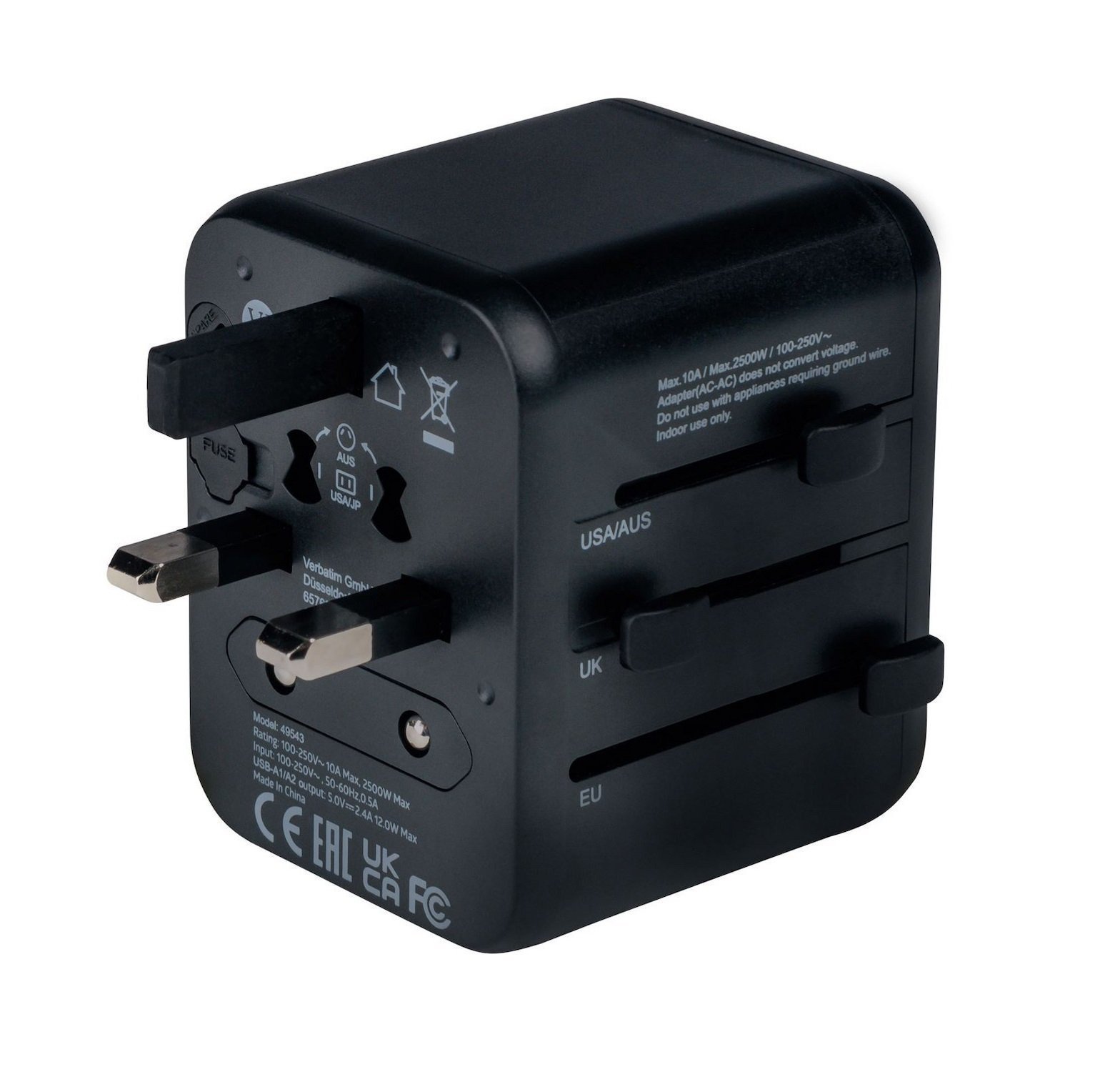 - Verbatim UTA-01 Universal Travel Adapter with 2x USB-A ports