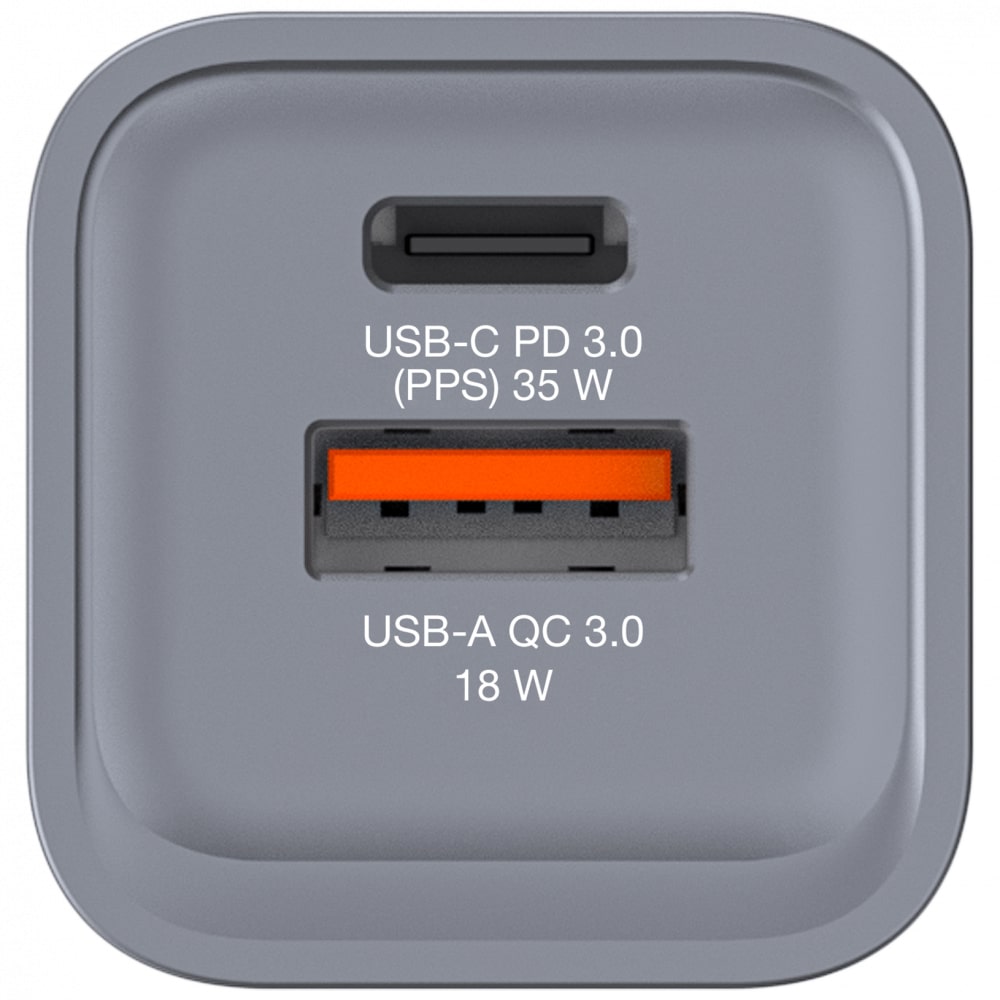 • Equipped with 1 x USB-C® PD 3.0 up to 35W and 1 x USB-A QC 3.0 up to 18W