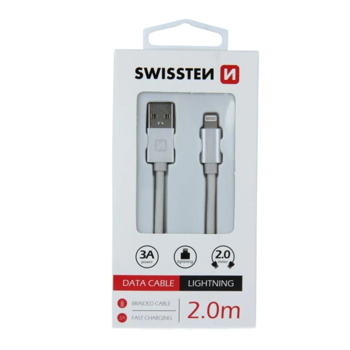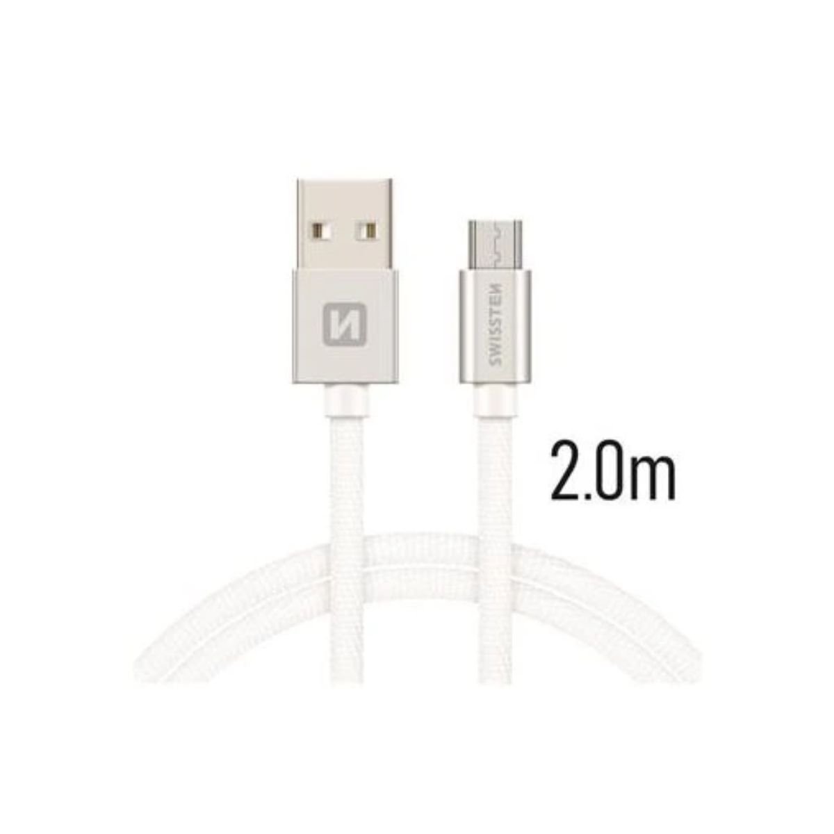 Swissten USB-A σε Micro USB Braided Καλώδιο 3A με Ανοδιωμένους Συνδέσμους 2m Ασημί
