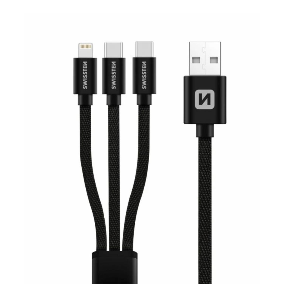 Swissten Textile 3σε1 Καλώδιο Φόρτισης με Lightning & 2x USB-C 1.2m 72501103 Μαύρο
