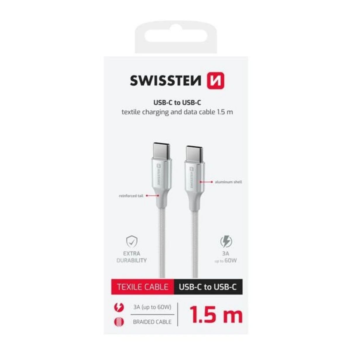 Swissten KEVLAR Καλώδιο USB-C σε USB-C 60W (3A) Extra Durable 1.5m 71541014 Άσπρο