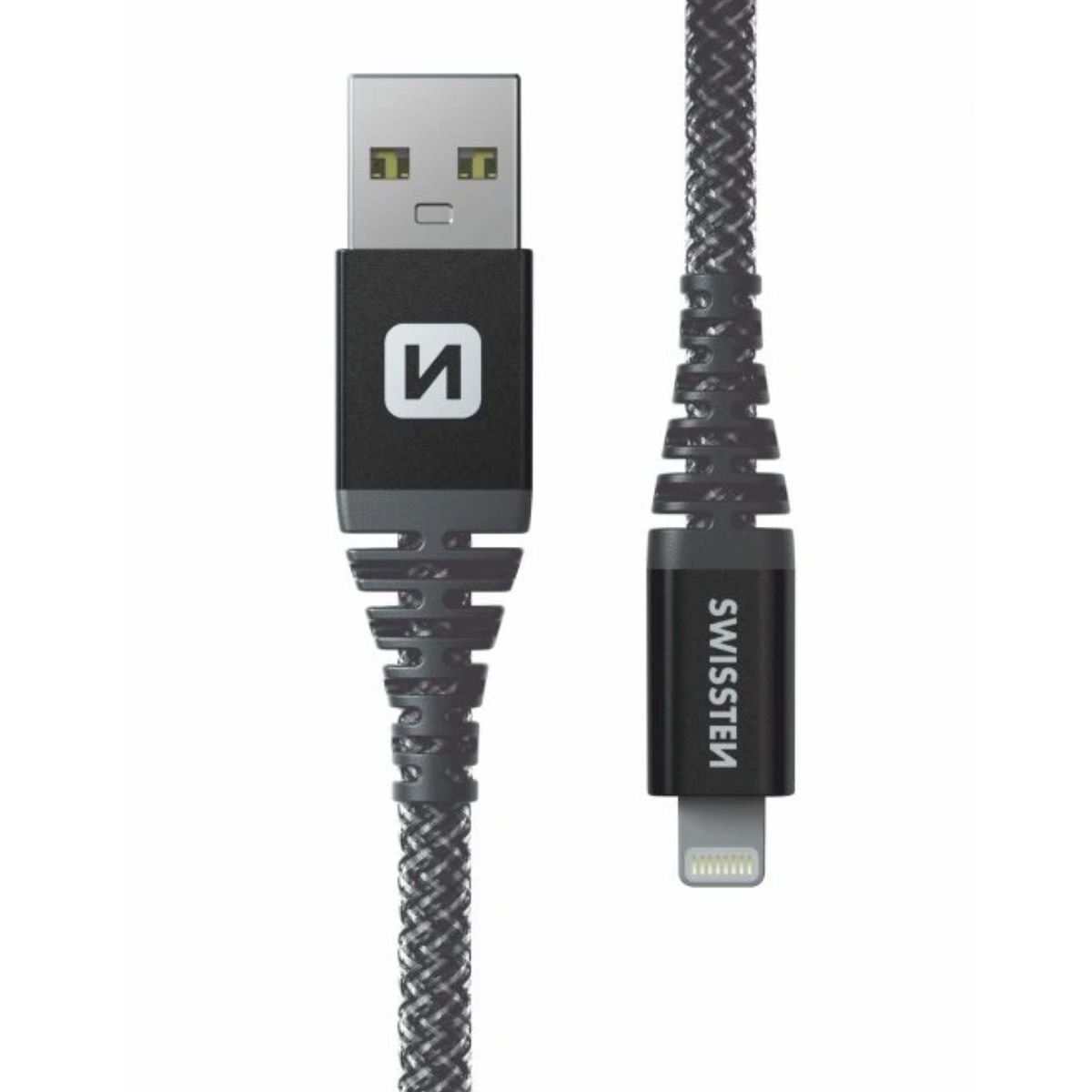 Swissten USB-A σε Lightning Braided Καλώδιο 3A με Μεταλλικούς Συνδέσμους 3m 71527600 Μαύρο