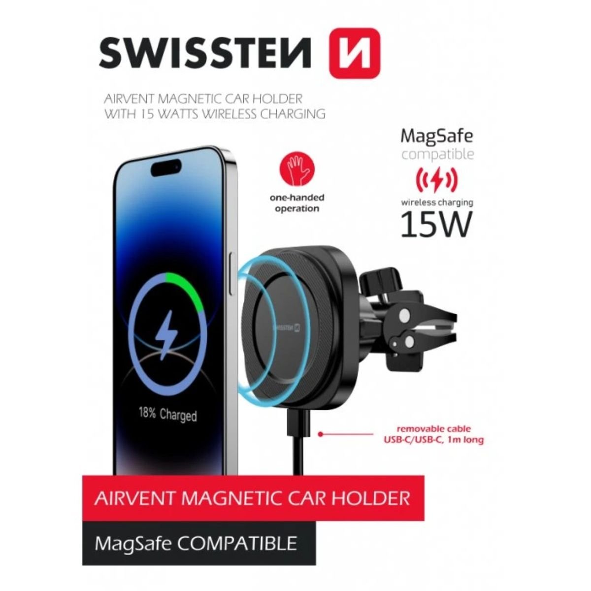 Swissten Easy Mount Μαγνητική Βάση Κινητού για Αεραγωγό Αυτοκινήτου 65010700 Μαύρο