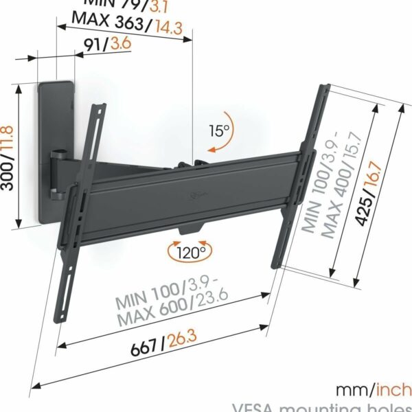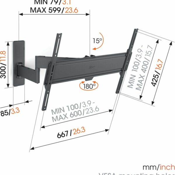Vogels COMFORT TVM3843-B TV Wall Mount 60×40 Turn 2 arms 55kg Black