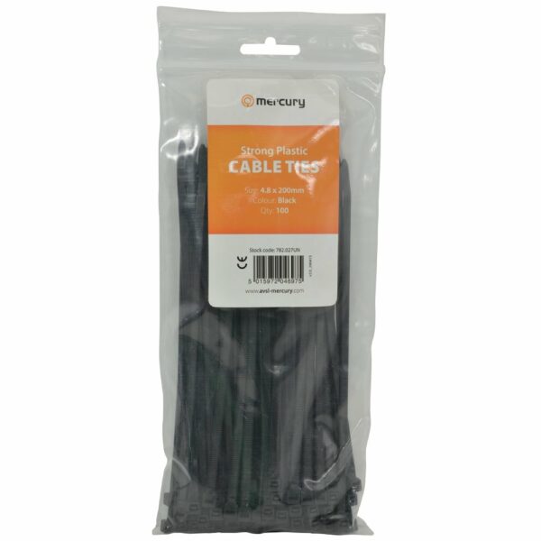 Mercury Cable Ties 4.8x200mm Black 782.027UK