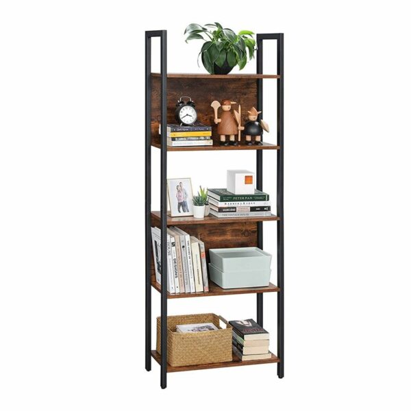 Μεταλλική Βιβλιοθήκη με 5 Ξύλινα Ράφια 62 x 24 x 165 cm VASAGLE LLS025B01